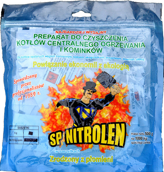 Каталізатор сажі SP NITROLEN – ефективний засіб для прочищення твердопаливних котлів, пічних і камінних труб, колосників і димоходів. Випалюють сажу і смолисті відкладення, запобігає загоряння сажі в пічних трубах, значно знижує корозію сталевих елементів камінів і печей і повністю запобігає корозії елементів з кольорових металів.