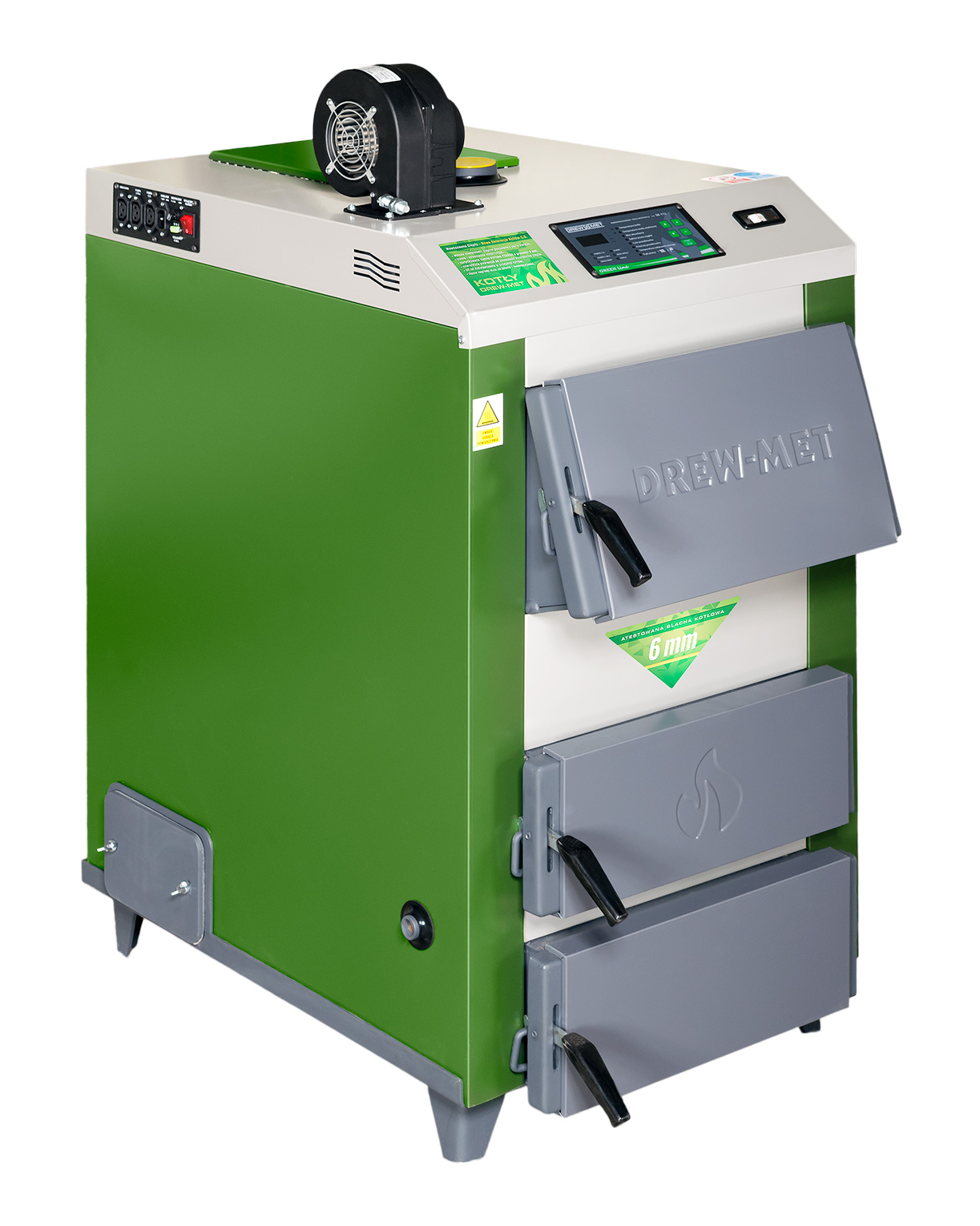 Котли типу MJ-3 це високоякісні і екологічні обігрівальні прилади. Завдяки використанню сучасної конструкції, використовується примусовий приплив повітря, за допомогою вмонтованого вентилятора, яким керує електронний регулятор. Верхній спосіб спалювання з відрегульованим видмухом повітря спричиняє досягнення оптимальних параметрів процесу спалювання сипучого вугілля і дає можливість утримувати задану температуру. Котел має також чавунне рухоме риштування і водяне, котре дуже ефективно відбирає теплову енергію з опалювальної сировини. Всі котли типу MJ-3 мають регулятор, що дає можливість підключення помп типів Центральне опалення i Підігрів теплої води, для щоденного користування.